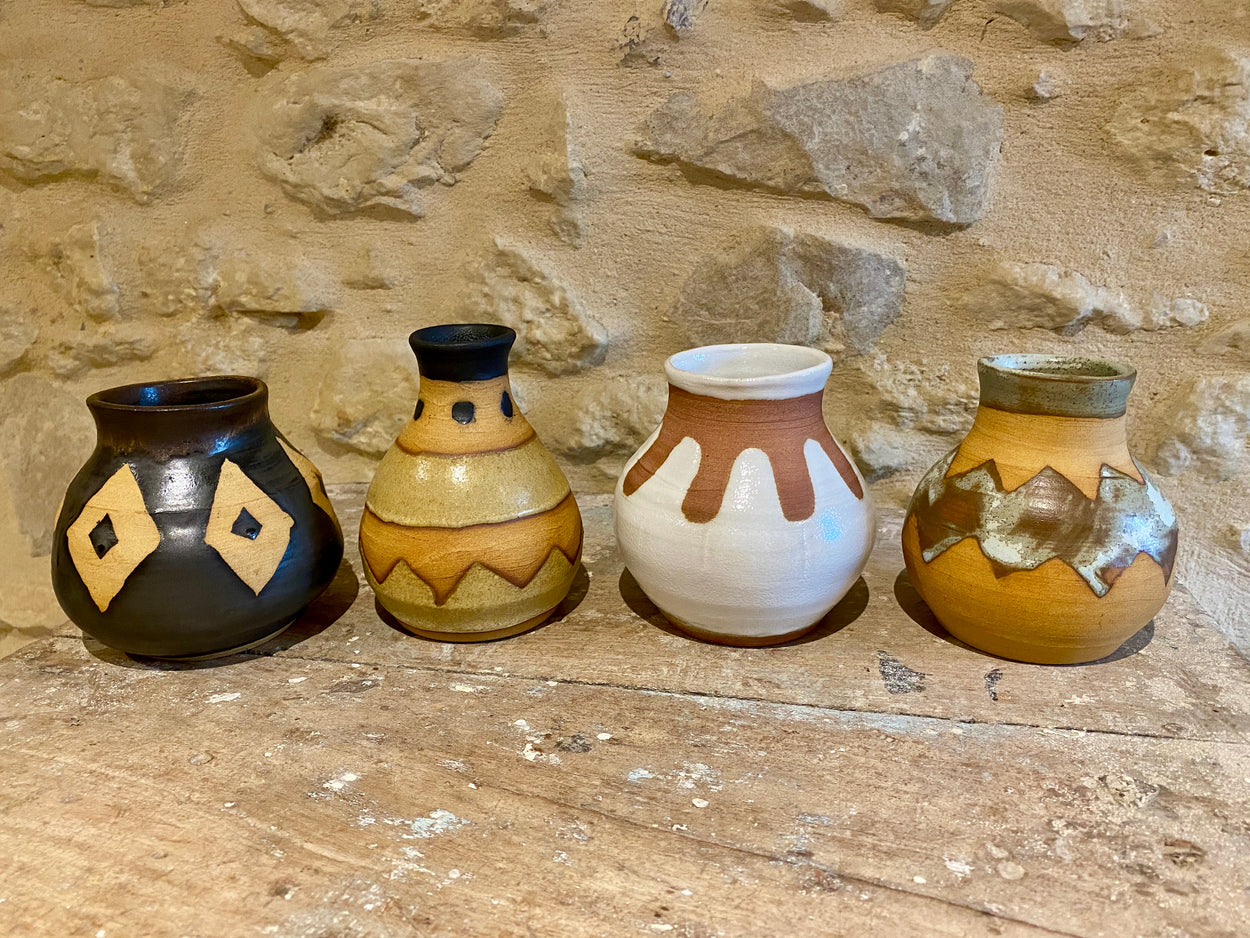 Our house is filled with African baskets and textiles thanks to my wife's African heritage. I was inspired by the irregularity of these pieces and wanted to create something similar with clay. These are the first four in the Africa basket collection. Wheel thrown stoneware with an intentionally irregular shape and later finished using a number of techniques these will dress up any shelf with a little taste of Africa.