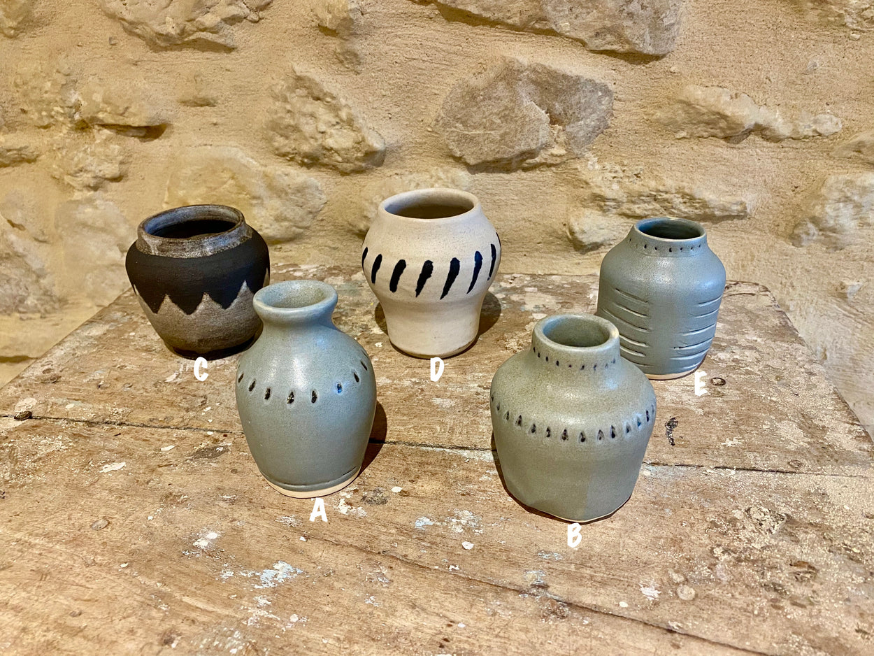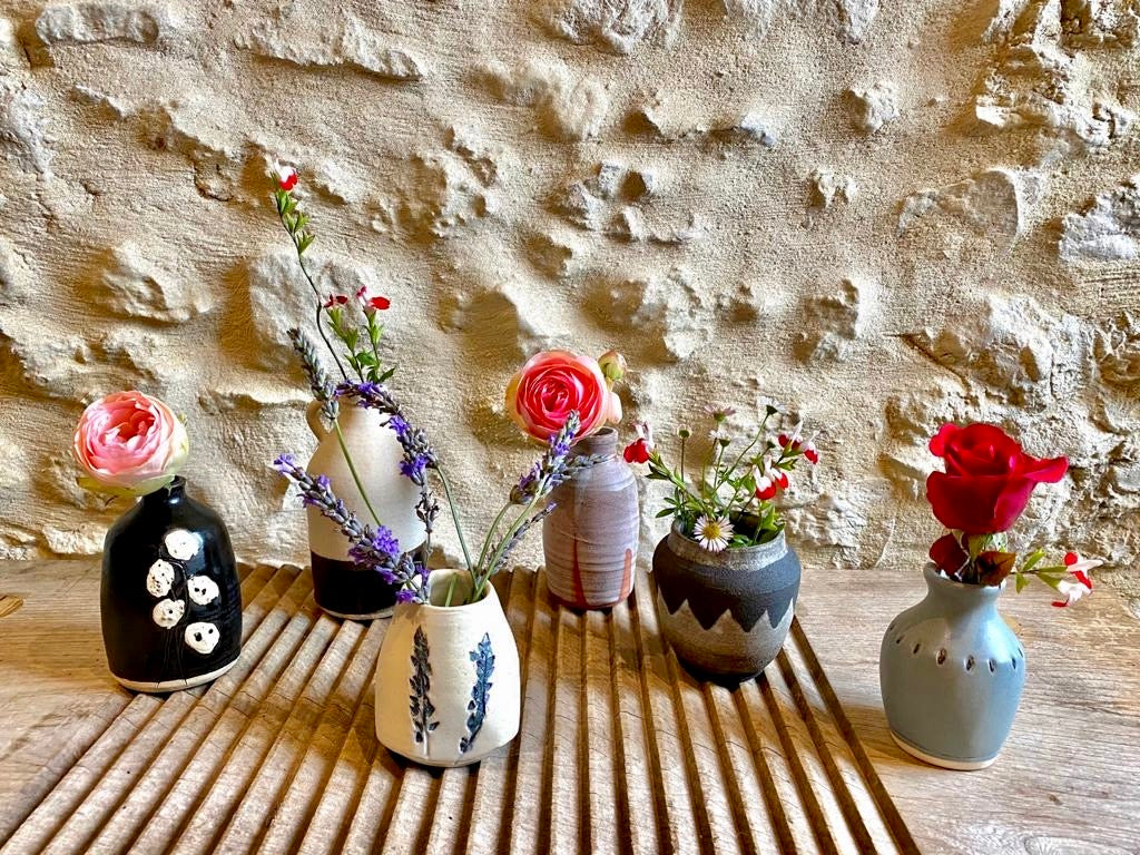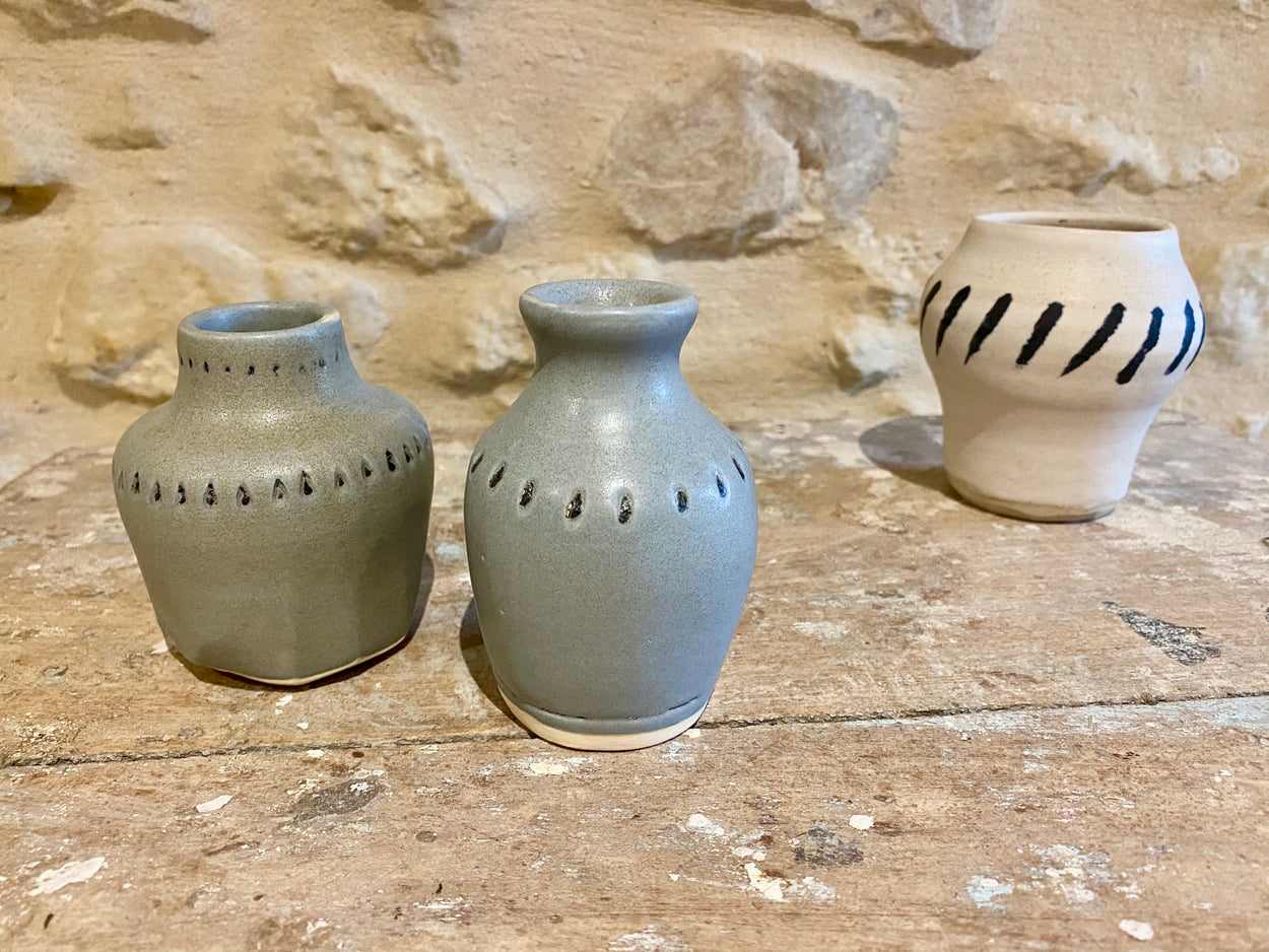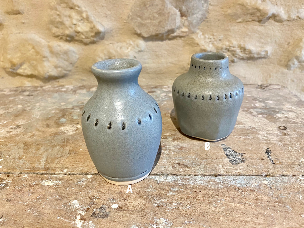 If you have as many flowers in your garden as we do it's always a good idea to have many small vases. These little beauties are sure to add a nice touch to your table, shelf or coffee/tea tray.