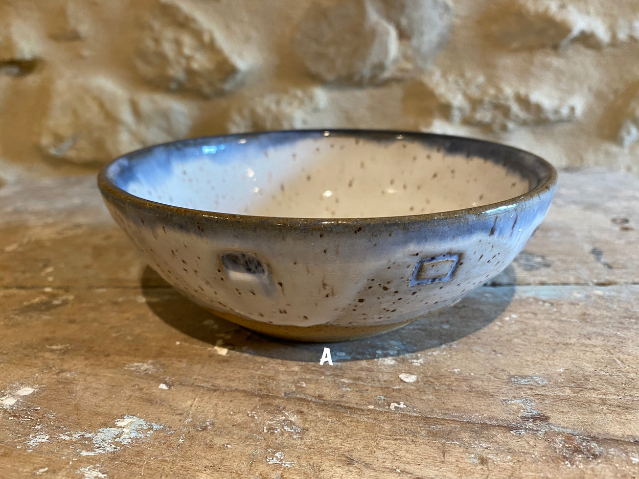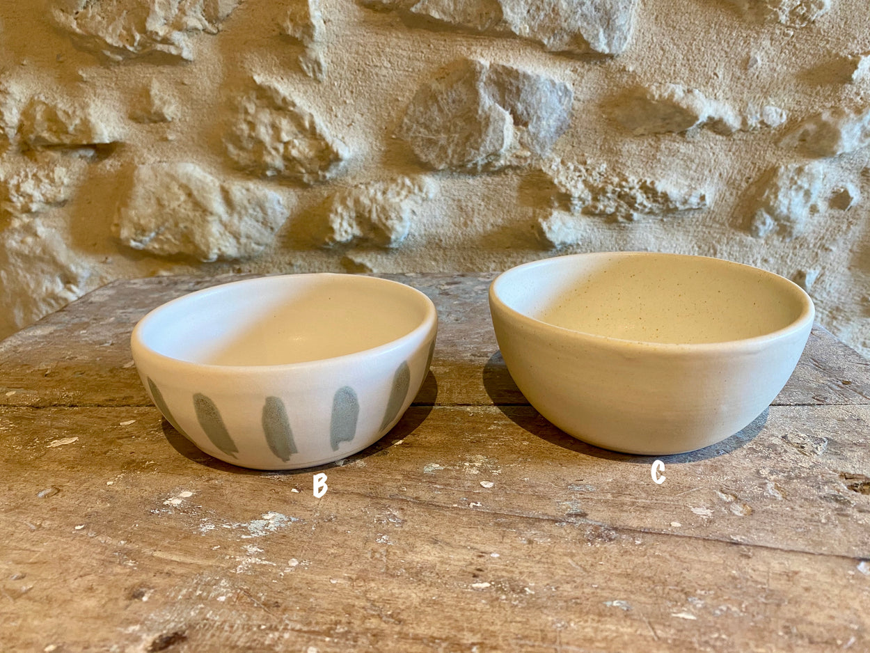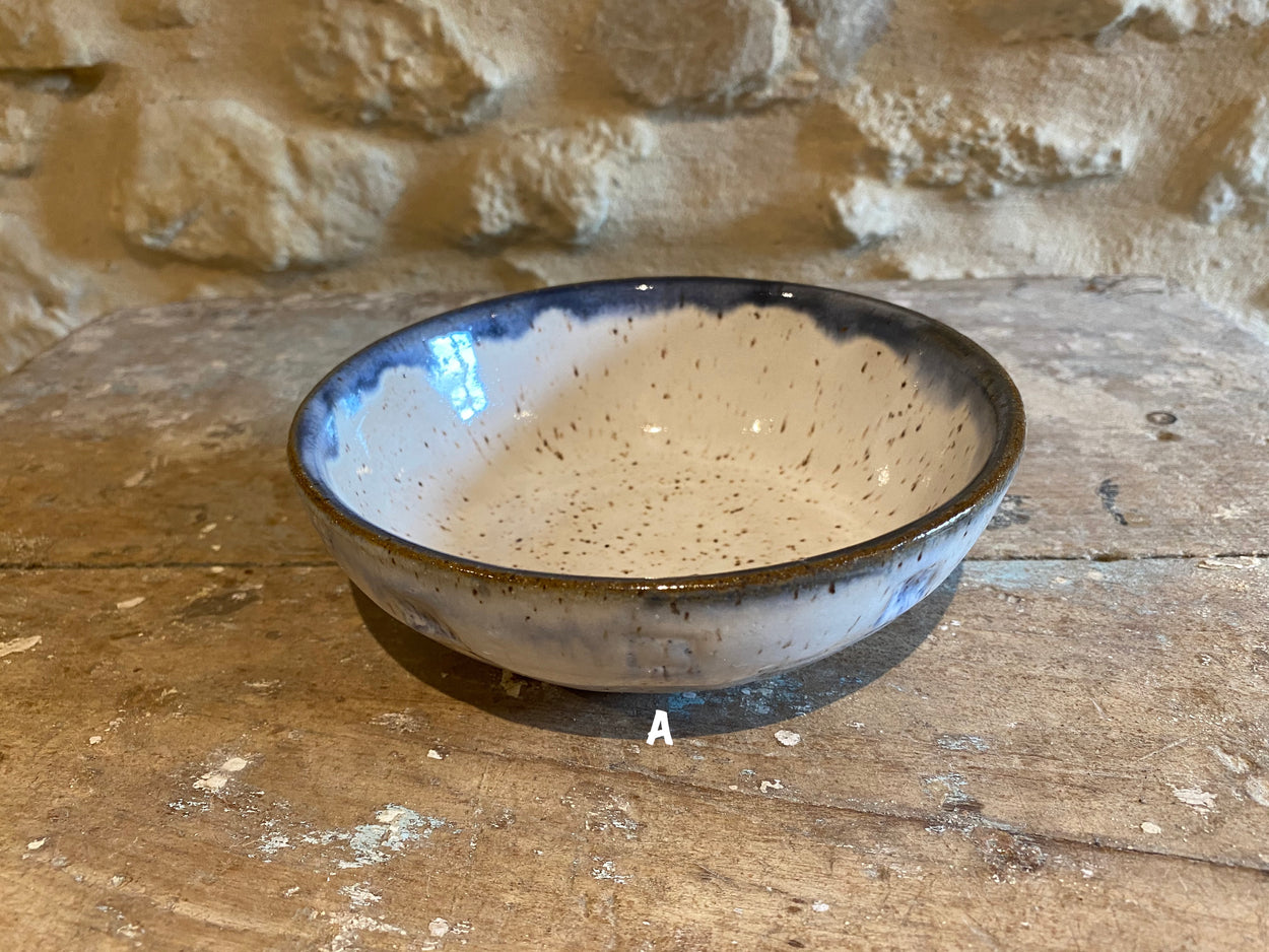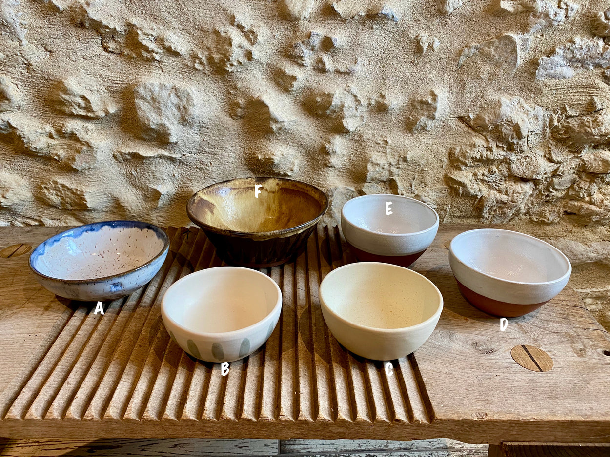 Wheel thrown stoneware bowls. Each one is unique and the result of different styles and glazes. Bowl B is for decorative use only because of crackle glaze. All other bowls may be used as decorative or functional pieces (food safe). Dishwasher safe but take care, hand washing is the best option.