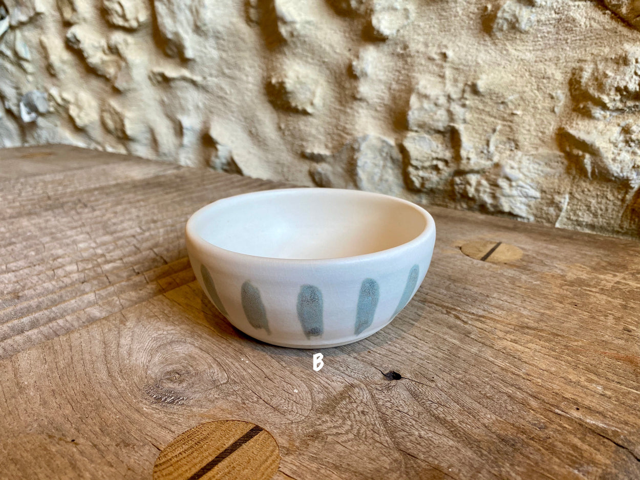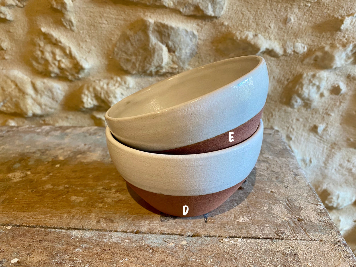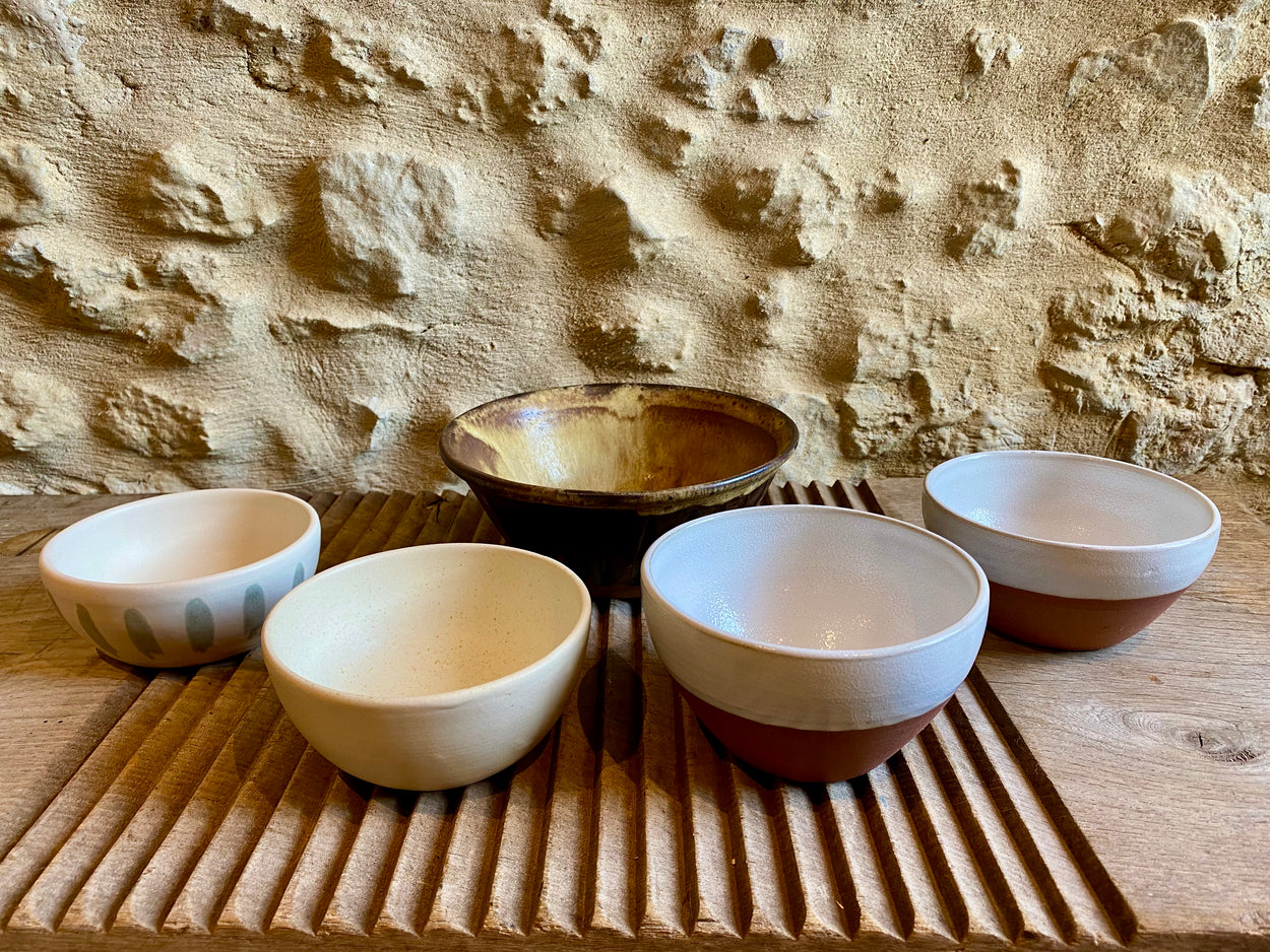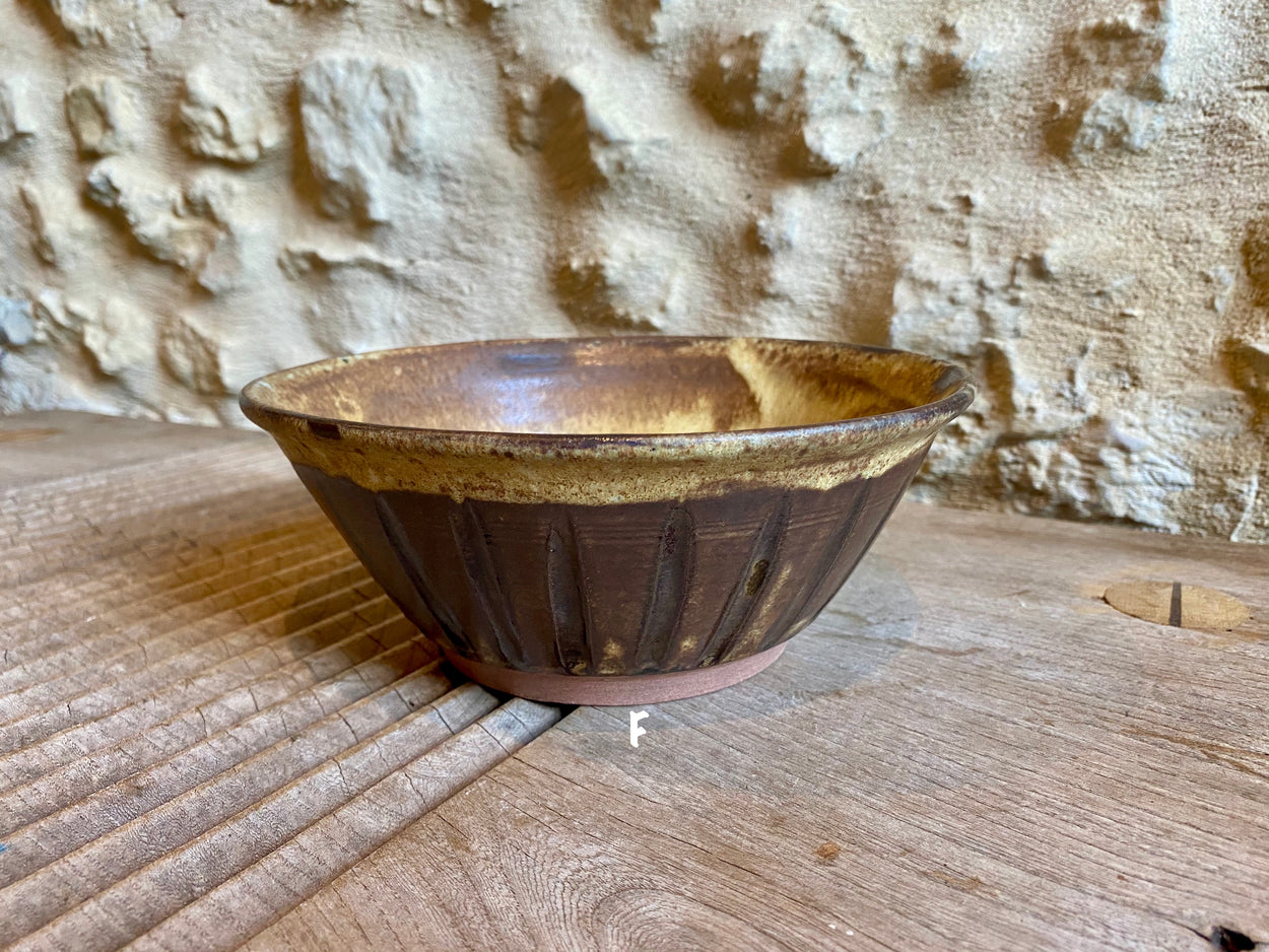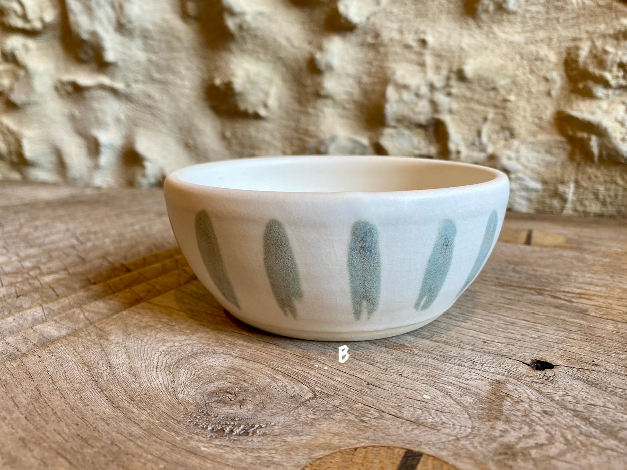 Wheel thrown stoneware bowls. Each one is unique and the result of different styles and glazes. Bowl B is for decorative use only because of crackle glaze. All other bowls may be used as decorative or functional pieces (food safe). Dishwasher safe but take care, hand washing is the best option.