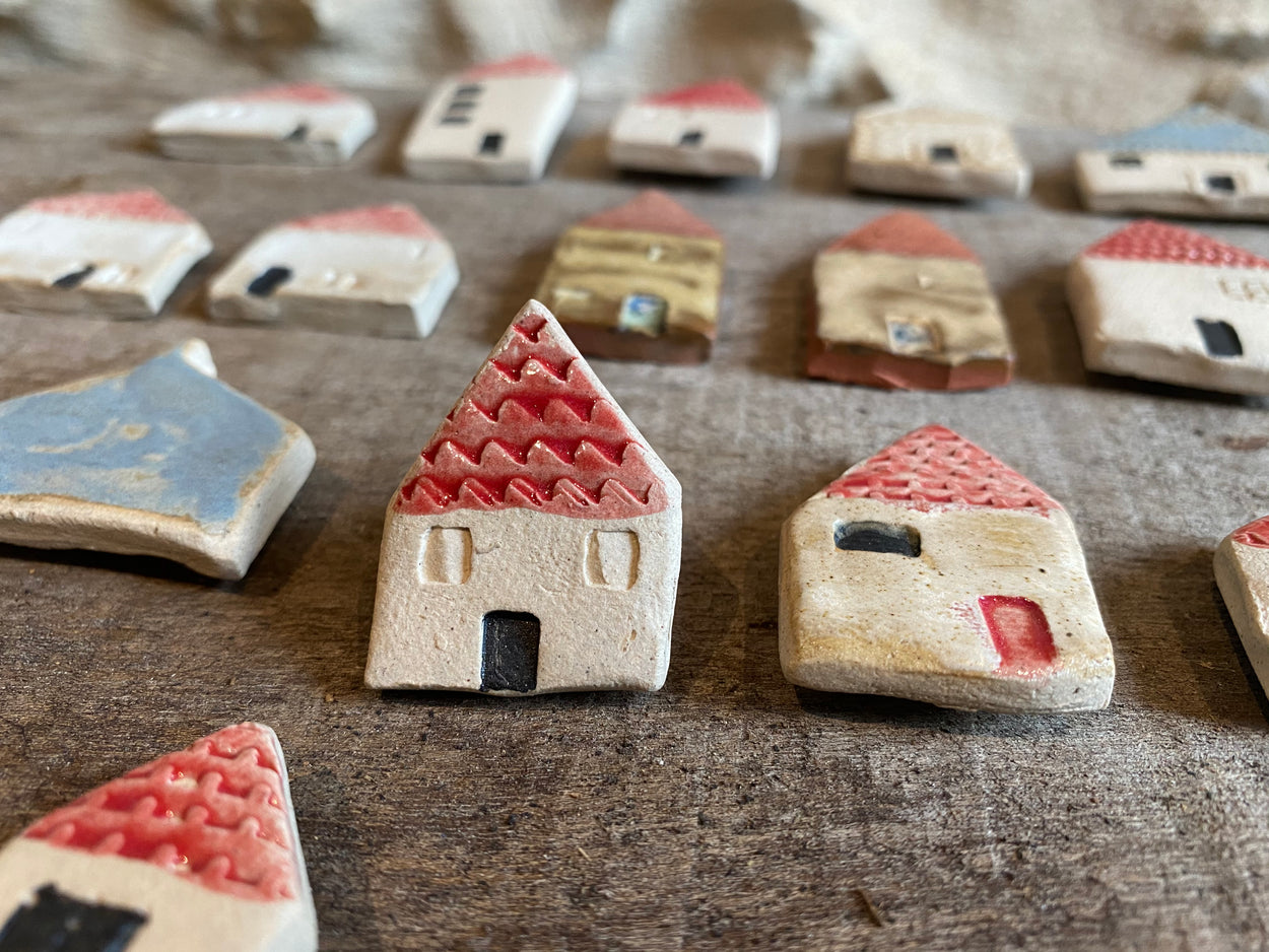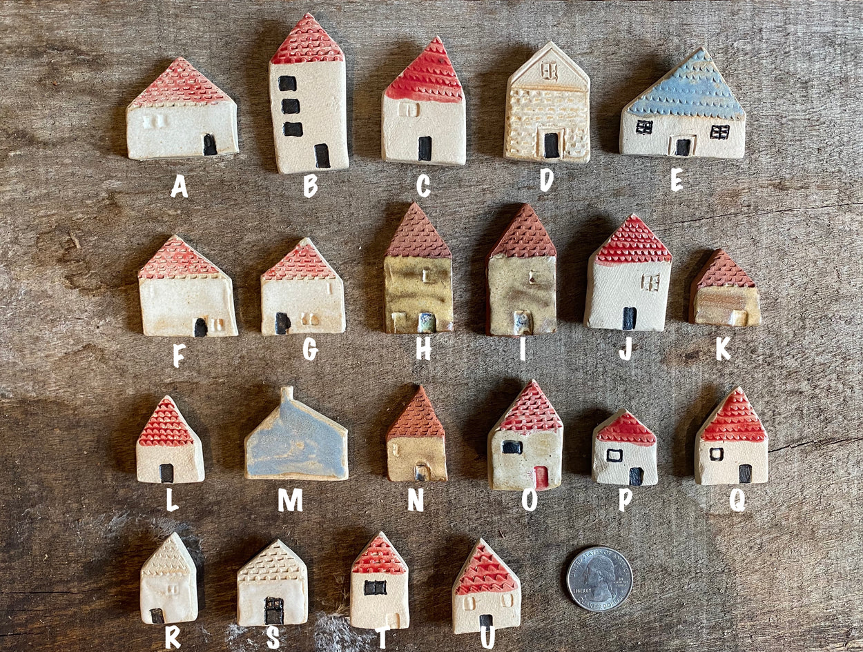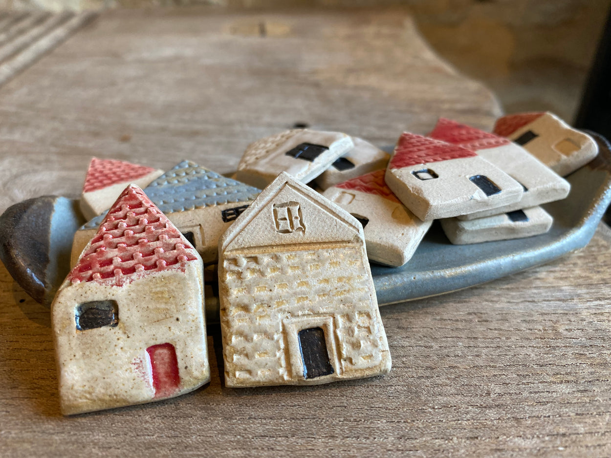 Stoneware clay was rolled out and cut by hand so each one is different, much like the old farmhouses that surround us here in France. Fired twice and glazed using different techniques gives the houses unique and varied colors. Use the letter coded photo to select the French farmhouse of your choice.